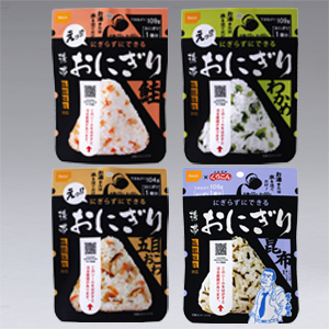 味は、鮭・わかめ・五目おこわ・昆布の4種類。