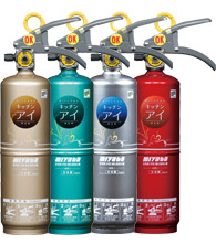 安心・安全な液体の住宅用消火器「キッチンアイ」 お酢のチカラで火を消す!! 1.天ぷら油火災に威力を発揮 2.液体だからお掃除が簡単! 3.お酢ベースの安心消火薬剤! 4.軽くコンパクトで操作がラク! 5.住まいに調和するジュエリーカラー